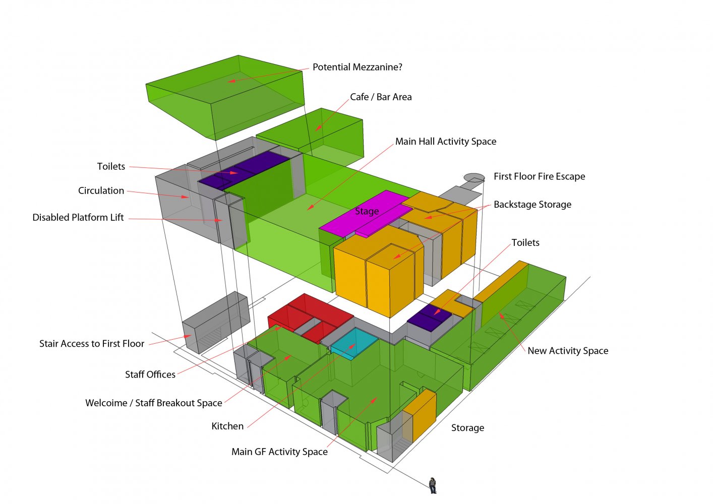 The £1.2m project is funded by East Bedlington Parish Council and the Big Lottery Fund and comprises ground floor offices, training and activity rooms for the parish Council and community users, as well as a grand theatre/music hall space at first floor level including a bar/café, stage, and fully accessible performance and viewing spaces.